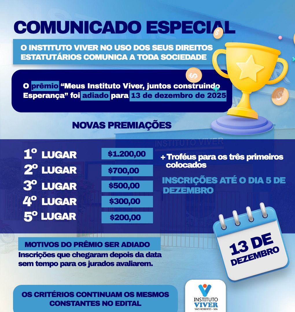 O Instituto Viver completa seus 7 anos. Em comemoração a essa data, a partir dia 20/09 a 5/12 o edital para a participação da atividade proposta já estará em aberto com o tema: